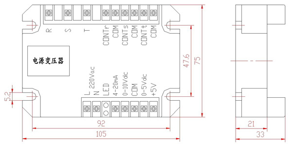 2、獨(dú)特的全兼容輸入控制模式, 0-5Vdc、0-10Vdc、4-20mA、1-5Vdc、0-10mA等自動方式均能適應(yīng),無須專門特別訂制,也可用電位器手動控制。輸入調(diào)節(jié)范圍寬,輸出調(diào)節(jié)精度高,三相對稱性好,抗干擾能力強(qiáng)。