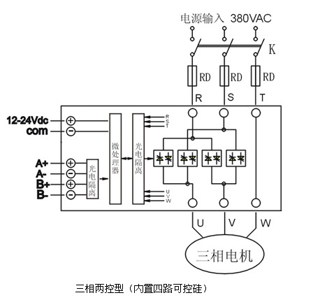 注:A、B正反控制端與電源輸入端之間也為光電隔離,COM端和A-、B-端可以連接或不連接。