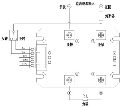 3、模塊內(nèi)A向和B向之間轉(zhuǎn)換在控制端已設(shè)置互鎖電路,有效防止正反轉(zhuǎn)開(kāi)關(guān)同時(shí)導(dǎo)通。